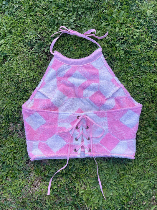 Vintage towel halter top | Pink Medium