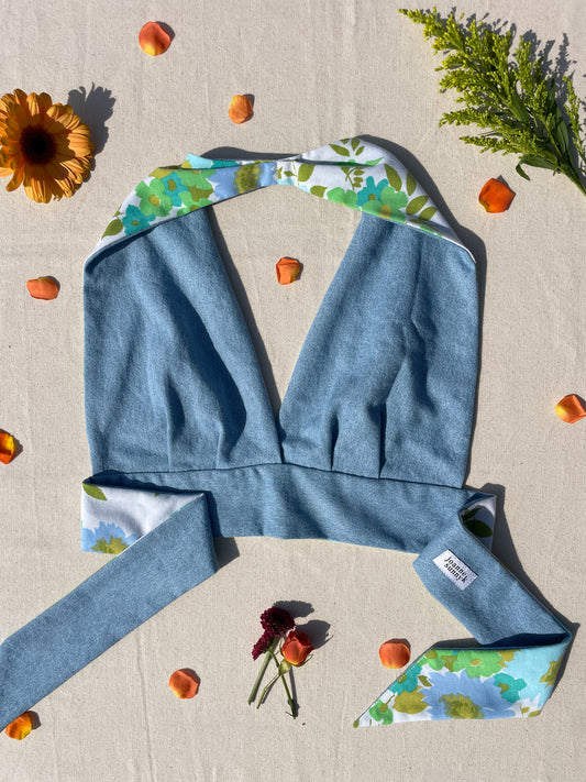Reversible Halter | Teal mix flower & light denimRegular price $40.00 USDRegular priceUnit price / per$58.00 USDSale price $40.00 USDSale
