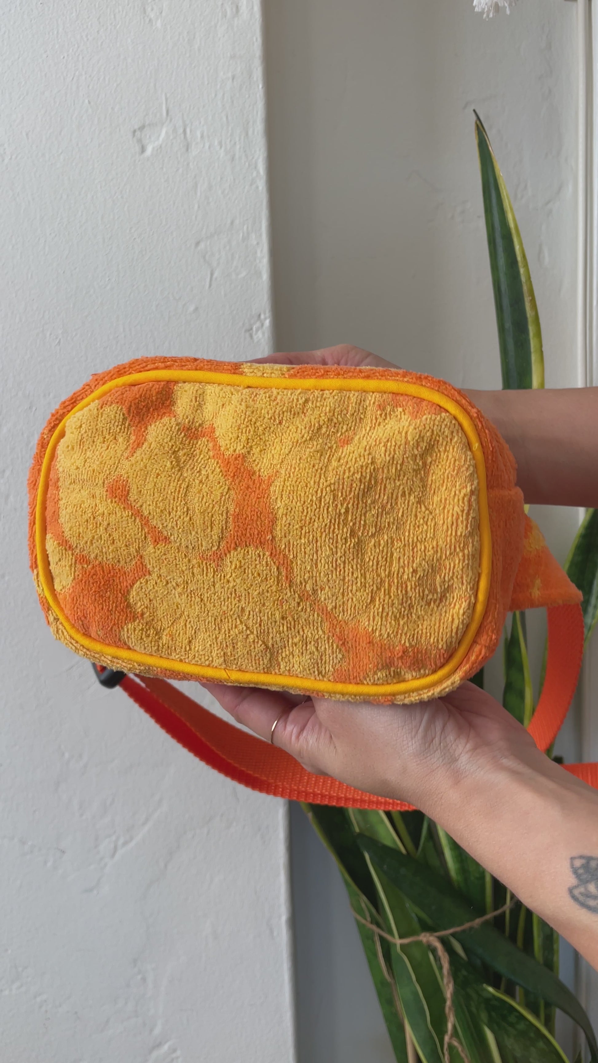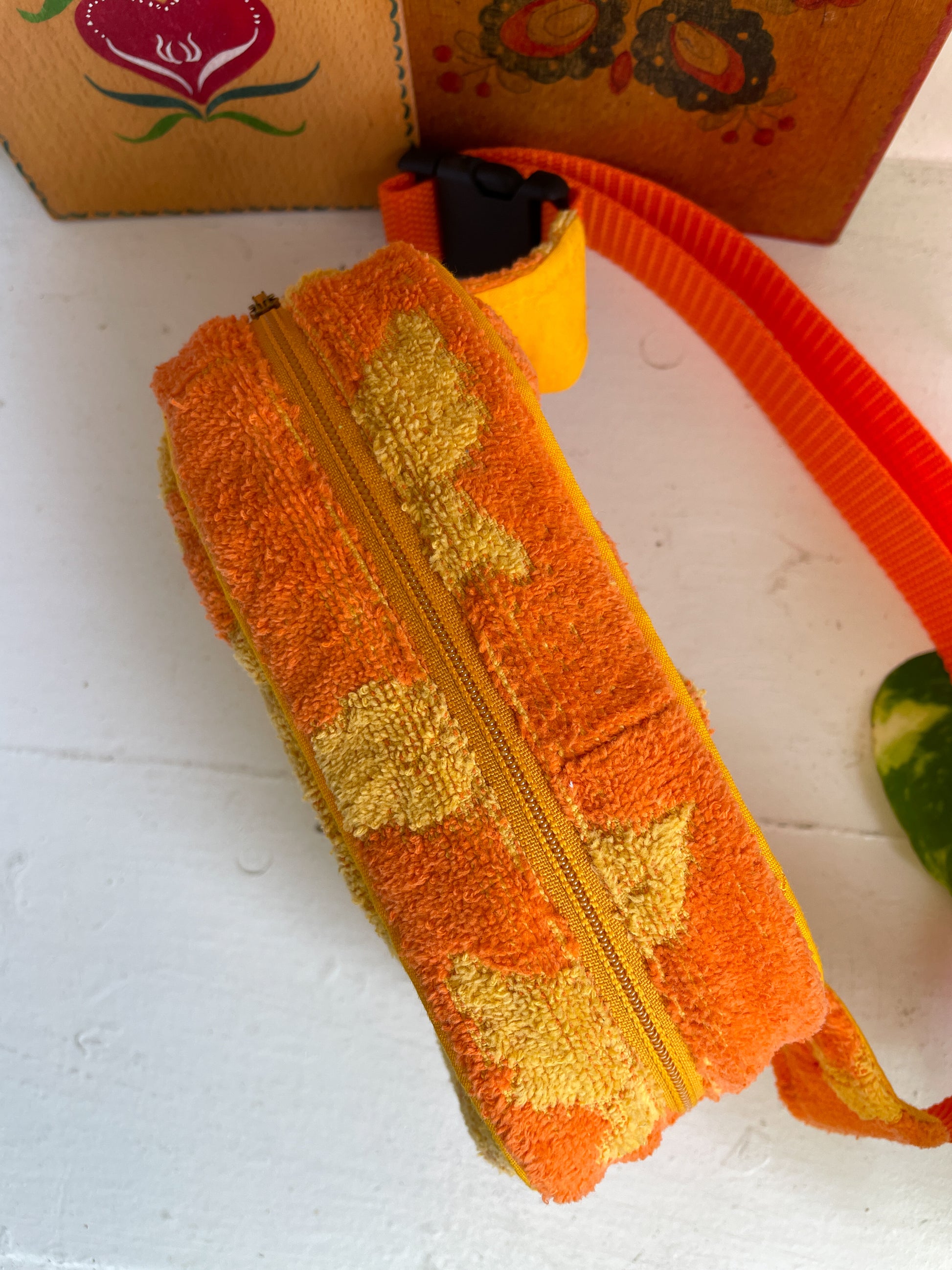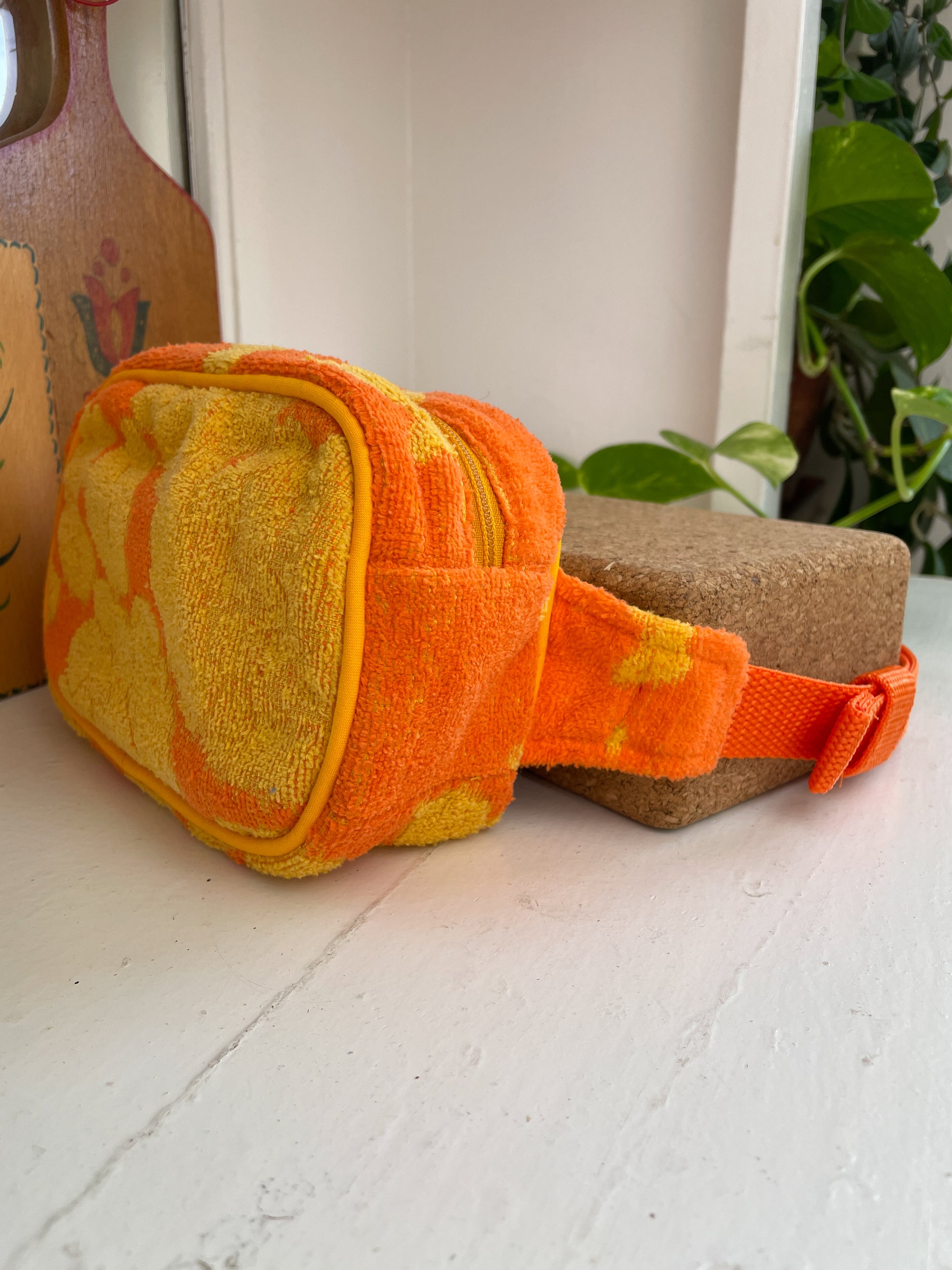 Upcycled vintage towel fanny pack with contrast pipping. Adjustable strap up to 42". Fully lined. Only 1 available!