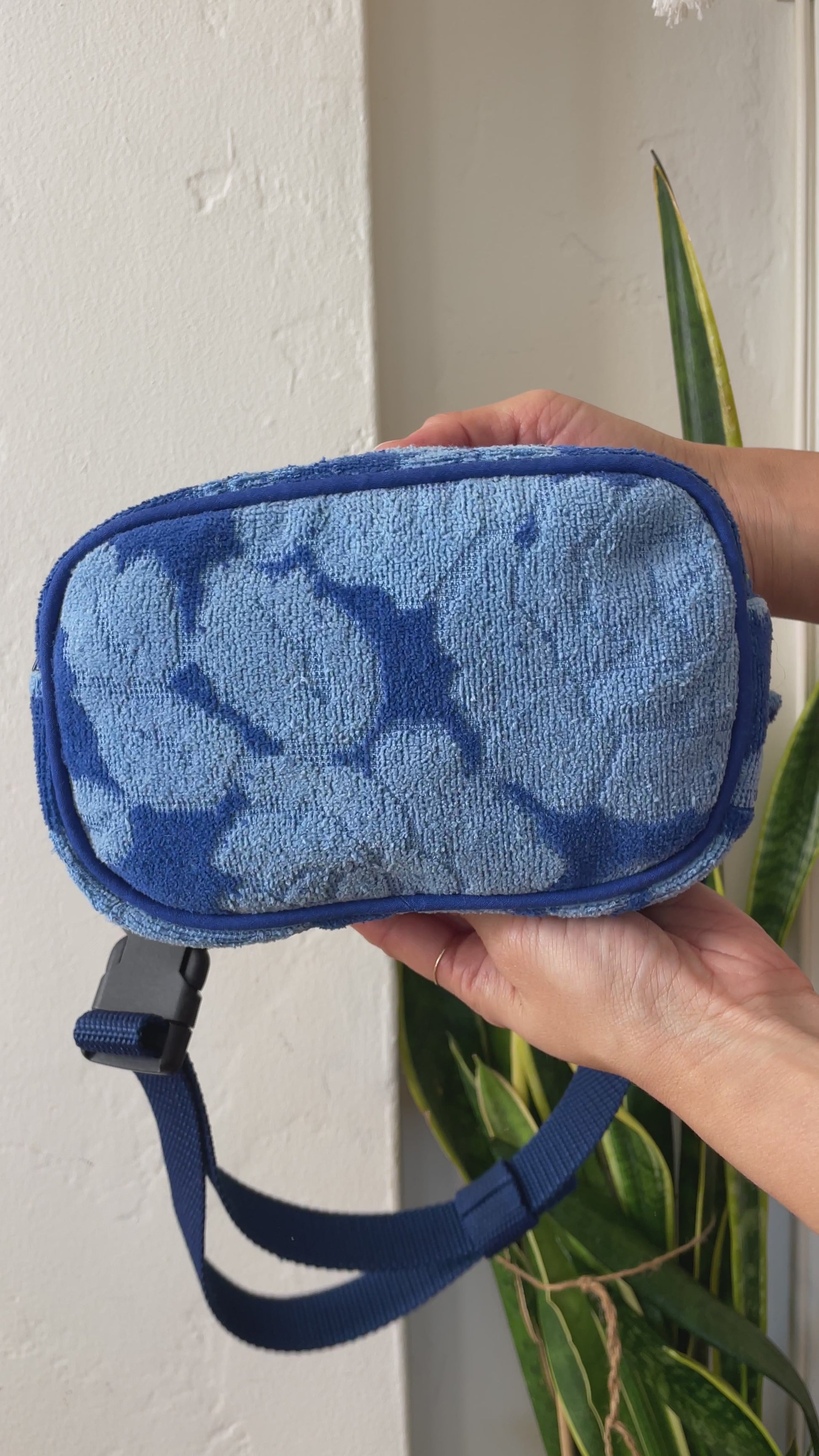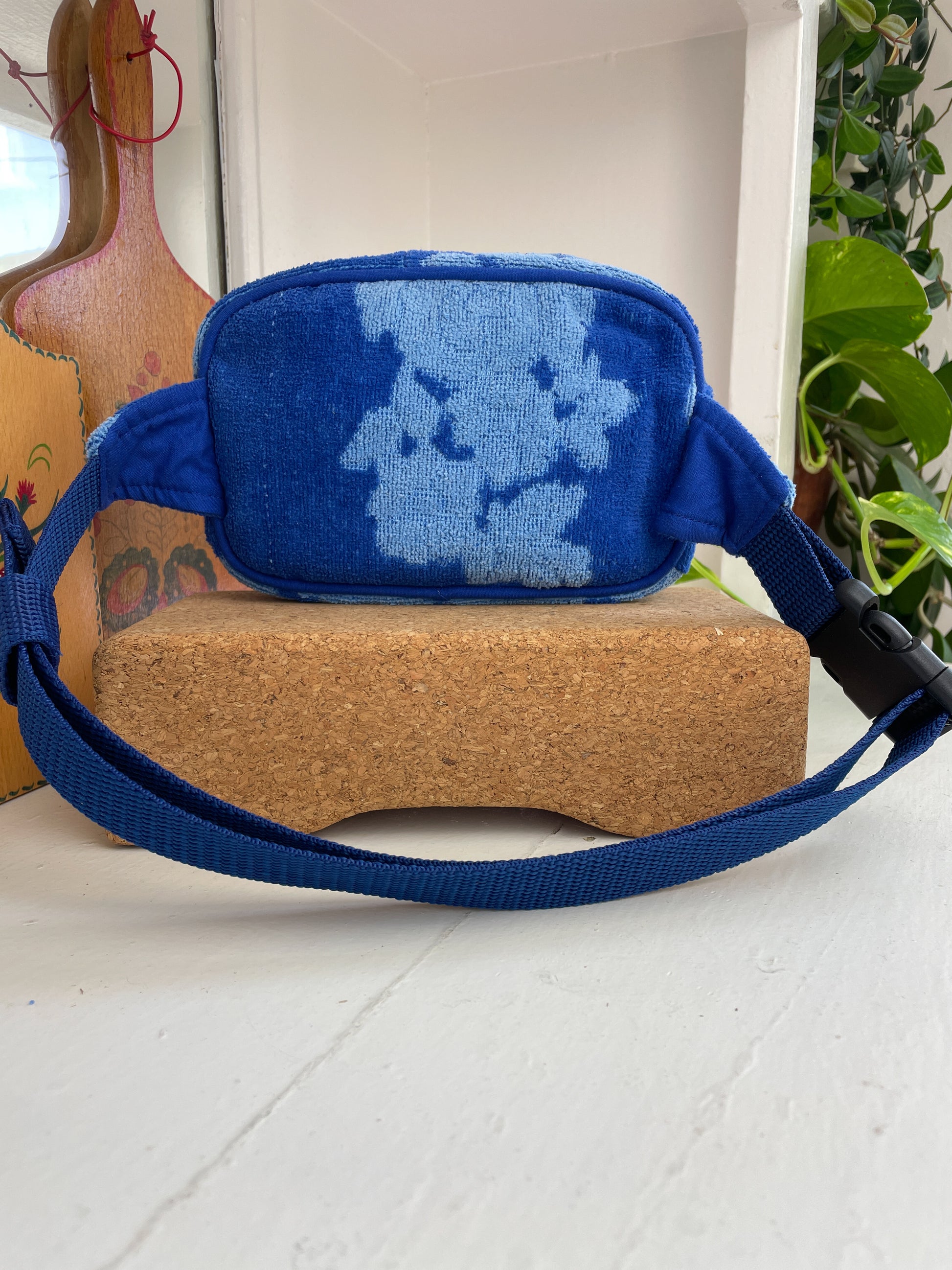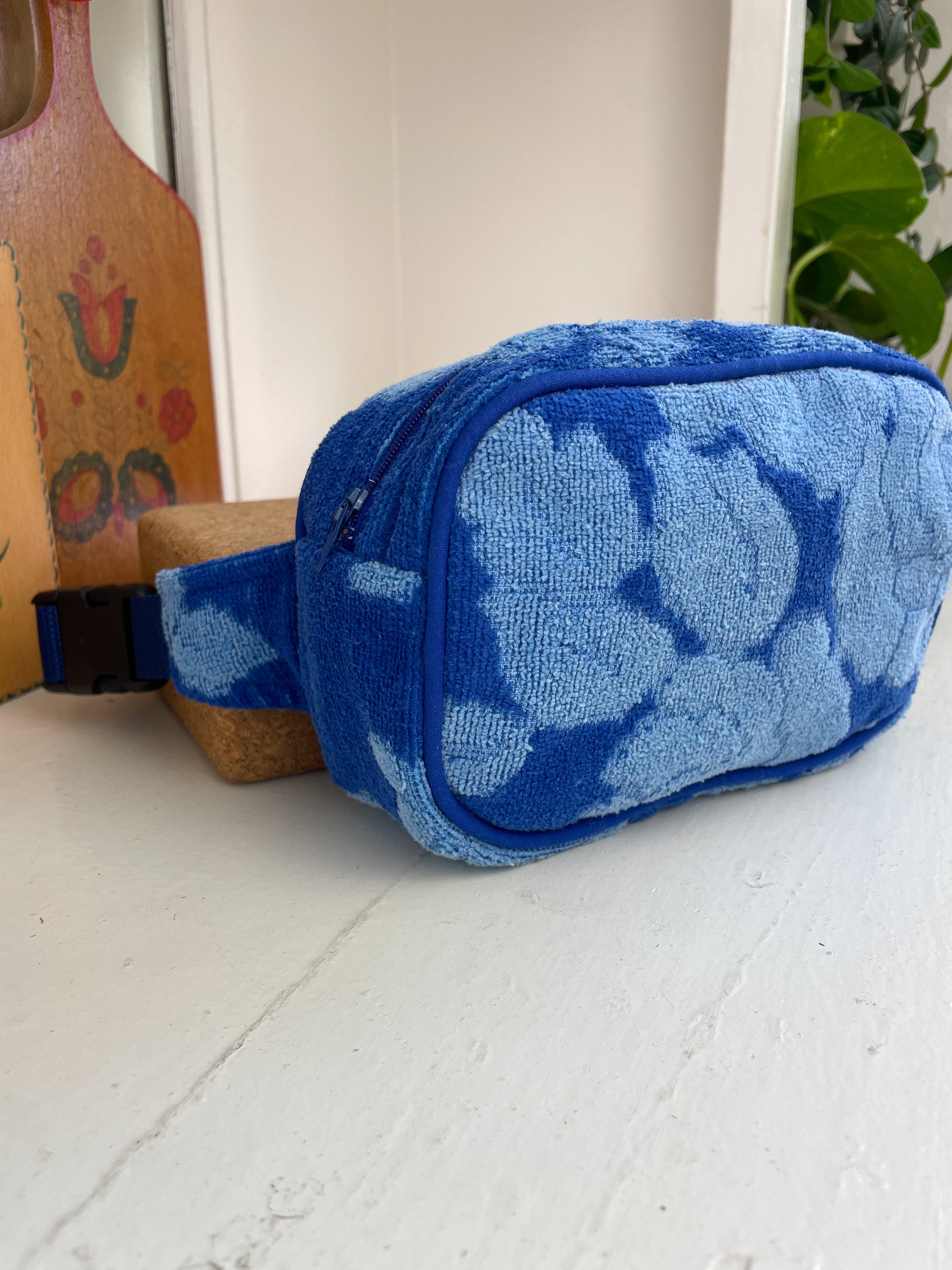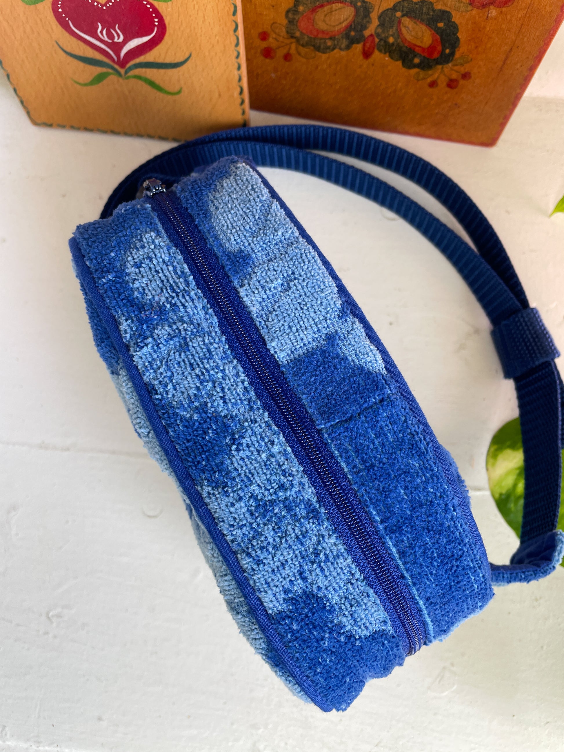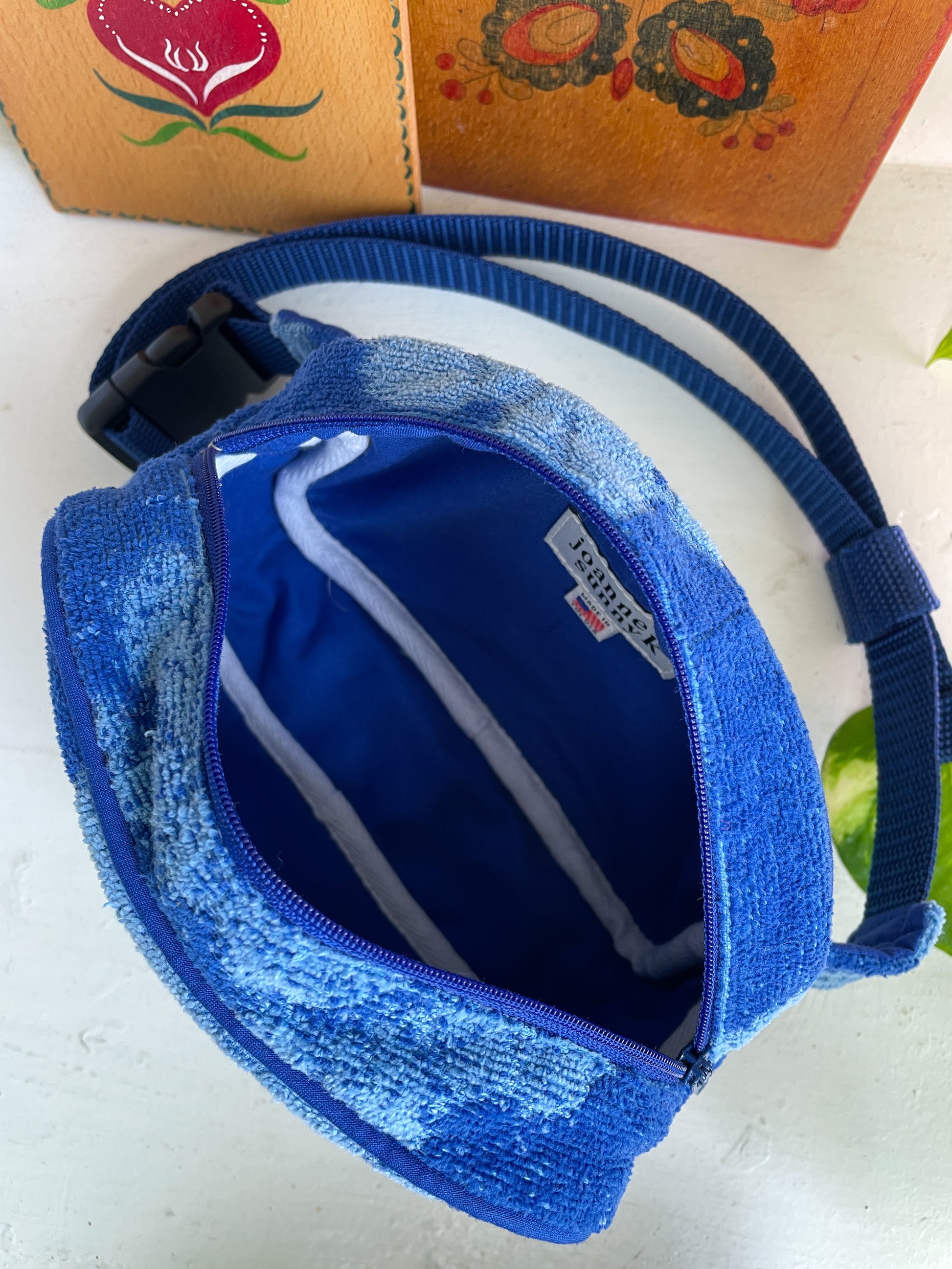 Upcycled vintage towel fanny pack with contrast pipping. Adjustable strap up to 41". Fully lined. Only 1 available!