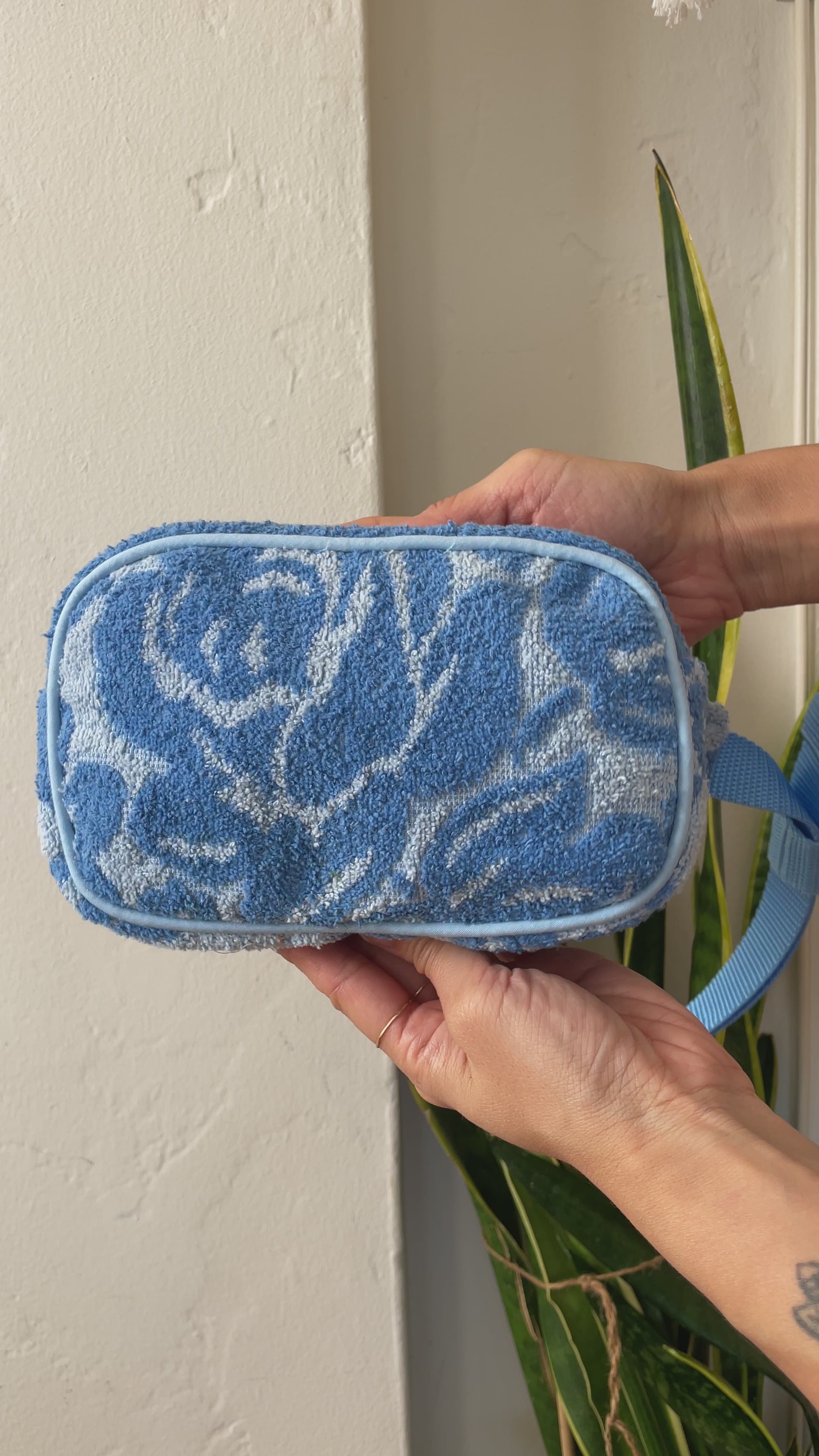 Upcycled vintage towel fanny pack with contrast pipping. Adjustable strap up to 41". Fully lined. Only 1 available!