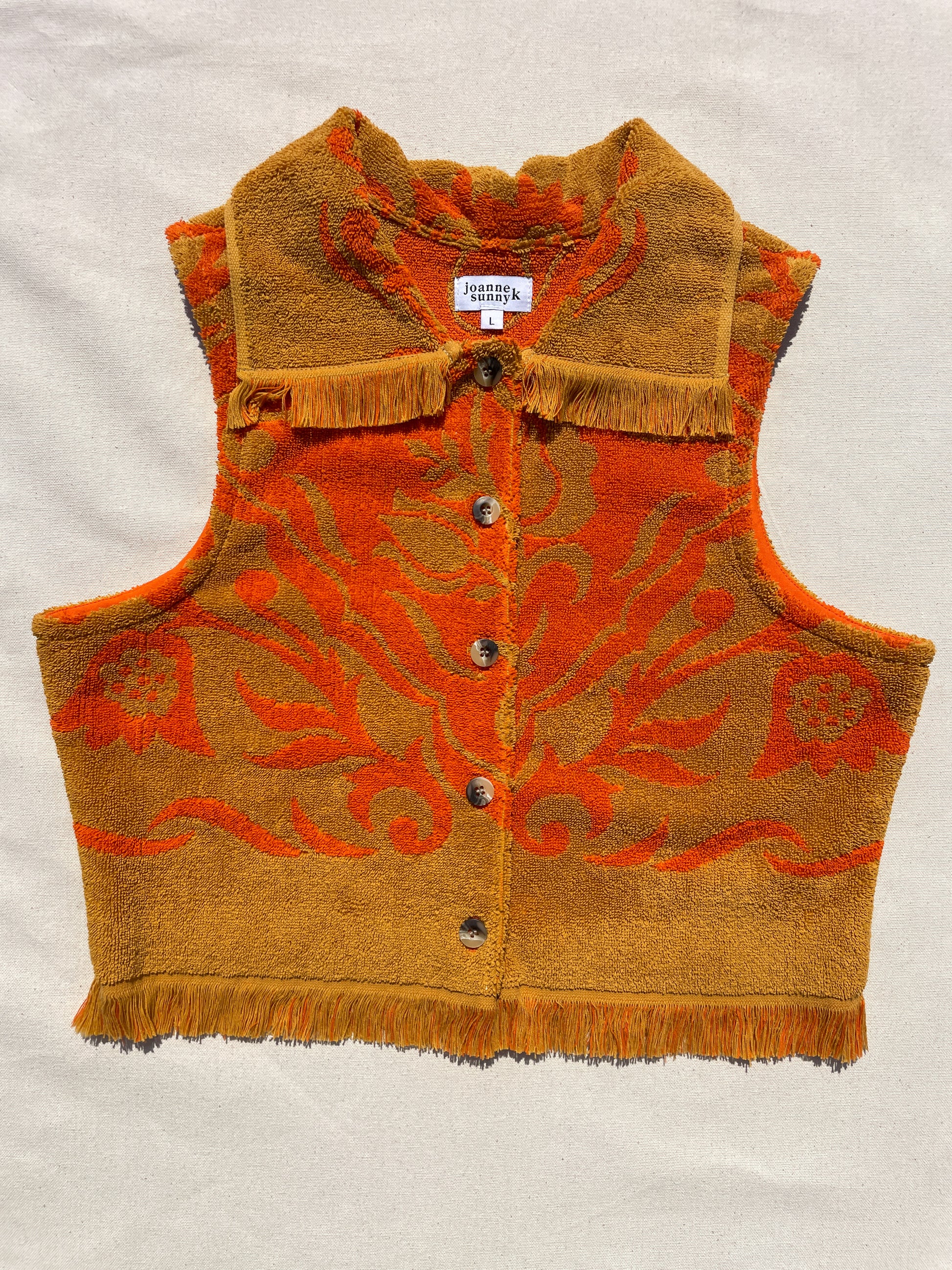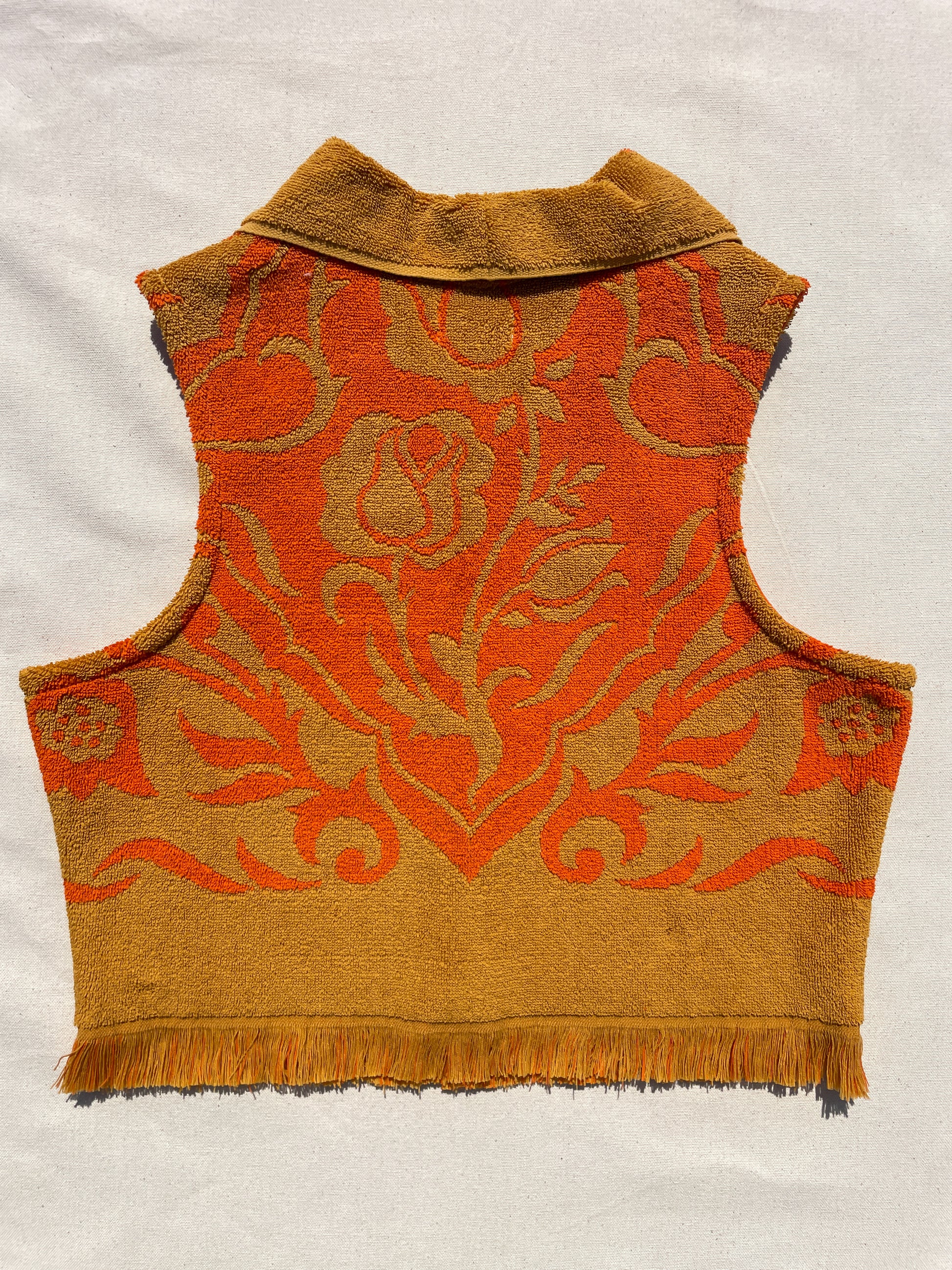 Upcycled vintage towel button up vest top with collar. Only 1 available!