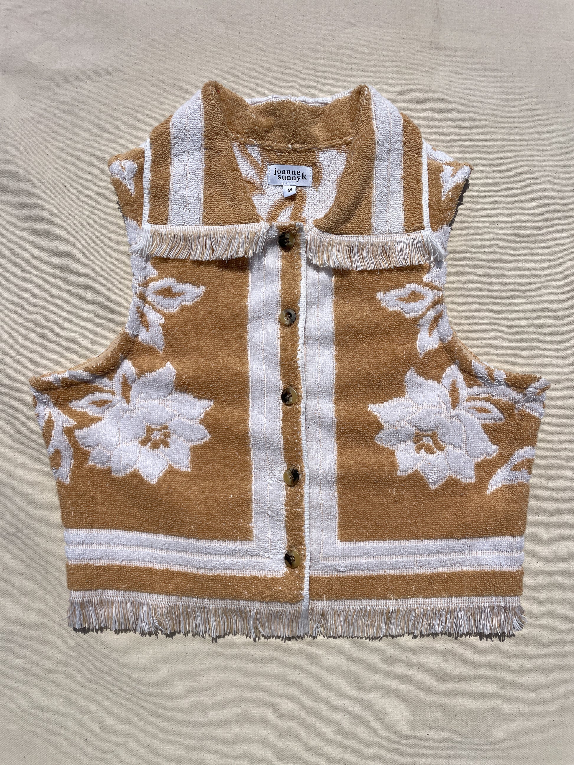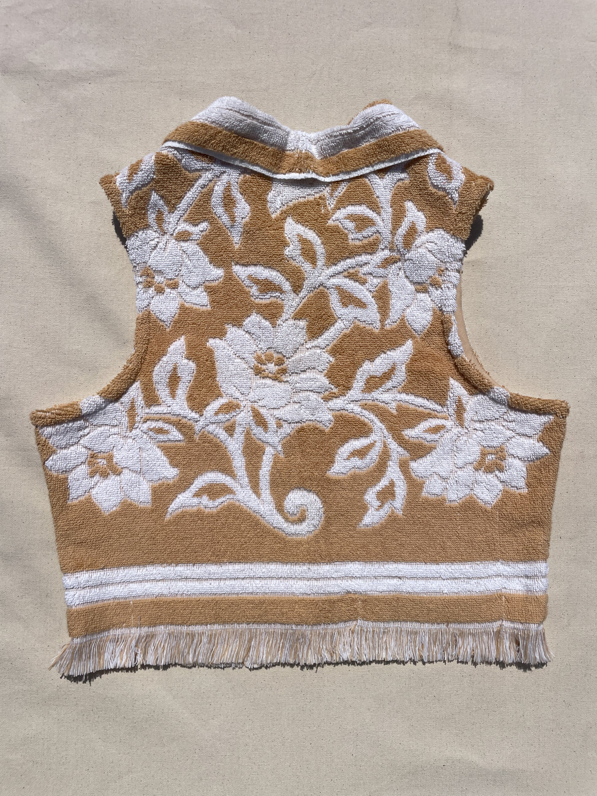 Upcycled vintage towel button up vest top with collar. Only 1 available!